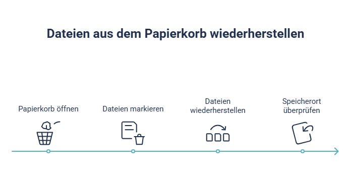 - Falls ohne Erfolg: Papierkorb öffnen → Datei suchen → Wiederherstellen.